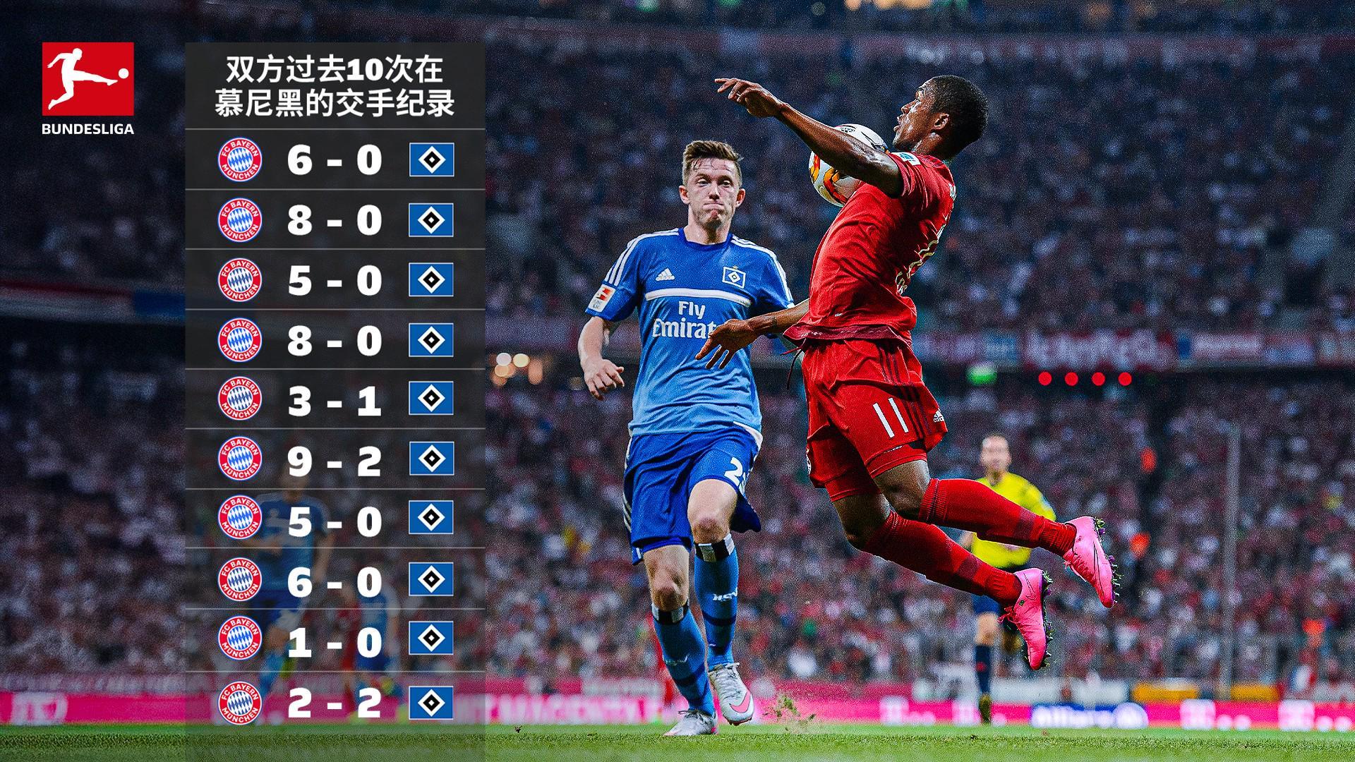 时隔七年德甲再迎南北德比,近十战拜仁对汉堡打入38球仅失3球